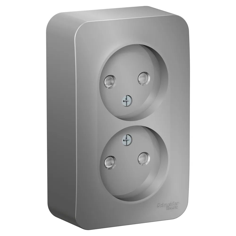 BLANCA Розетка 2-м ОП 16А 250В без шторок без заземл. изол. пласт. алюминий
