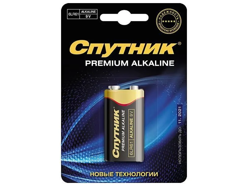 Элемент питания PREMIUM ALKALINE 6LR61/1B Крона, Спутник