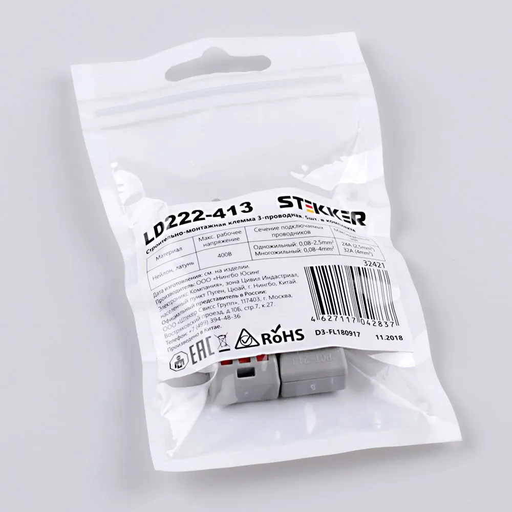 Клеммы строительно-монтажные 3-проводные, LD222-413 (DIY упаковка 5 шт)