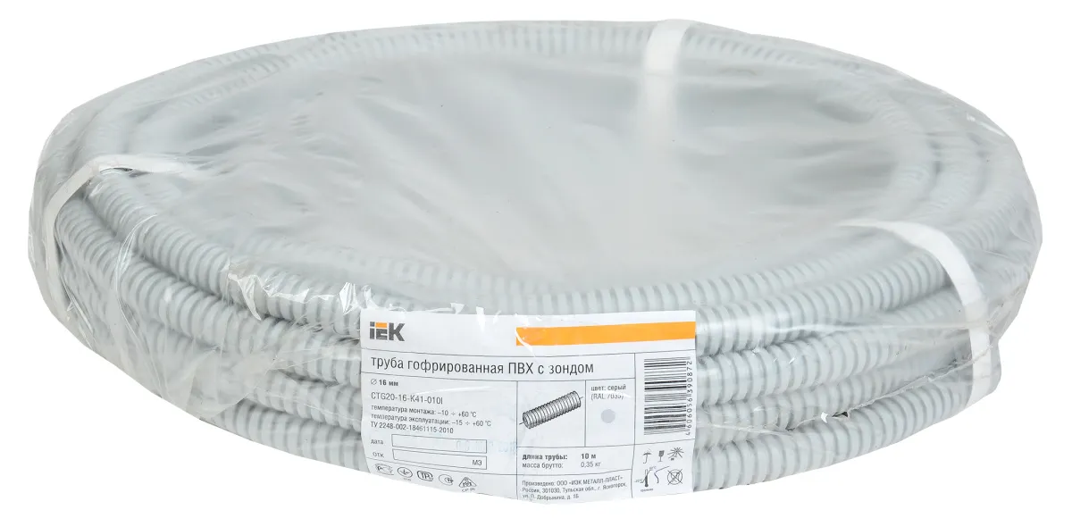 Труба гофрированная ПВХ 16мм с протяжной серая (10м)