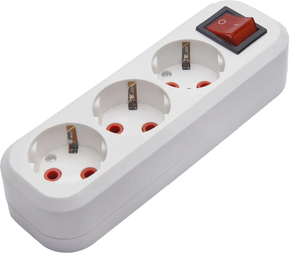 Колодка на 3 гнезда с выключателем, с заземлением, 250В, 16A, IP20, белая, PST16-311-20
