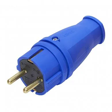 Вилка прямая с/з, каучук 250В, 16A, IP44, синяя, RPG16-21-441 (В 16-001)