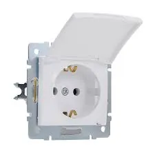 KARINA Механизм розетки с/з с крышкой керамика белая