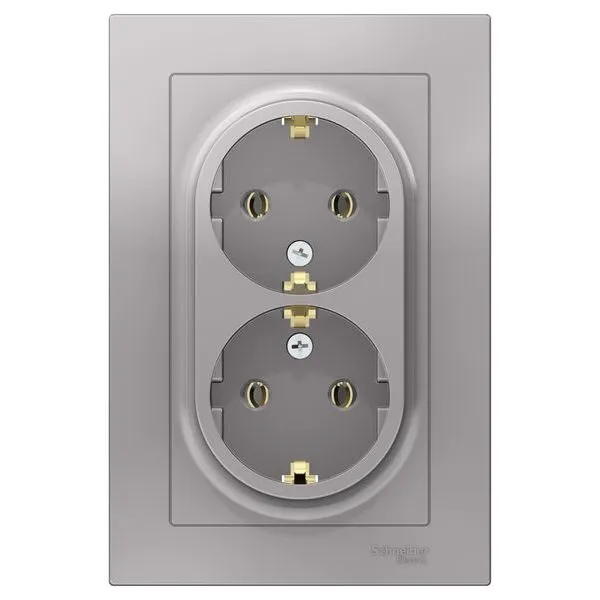 ATLAS Розетка 2-м с зазем. 16А в сборе алюм.