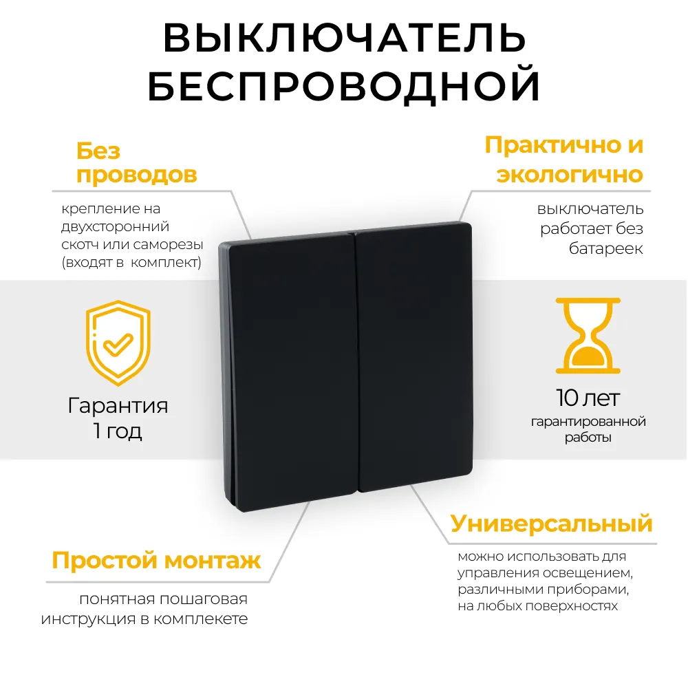 Выключатель дистанционного управления 230V 500W двухклавишный, TM82, черный