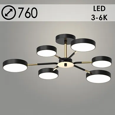 Люстра XI3224/6 BK+FGD черный/золото 90W LED 3000-6000K d760 h180, HN22
