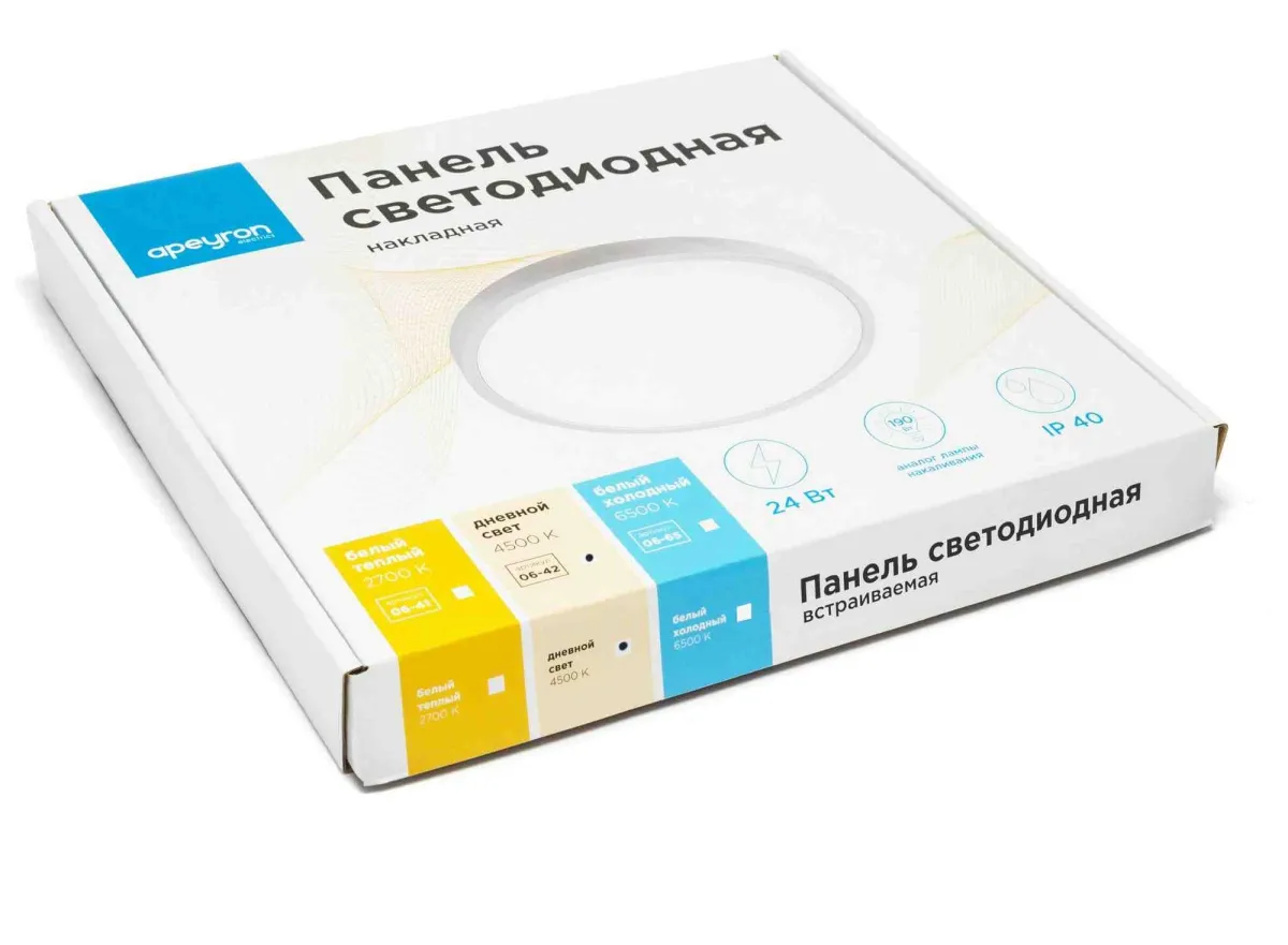 Светодиодная панель накладная круглая 220В, 24Вт, 1920Лм, 4500К, ф220 мм