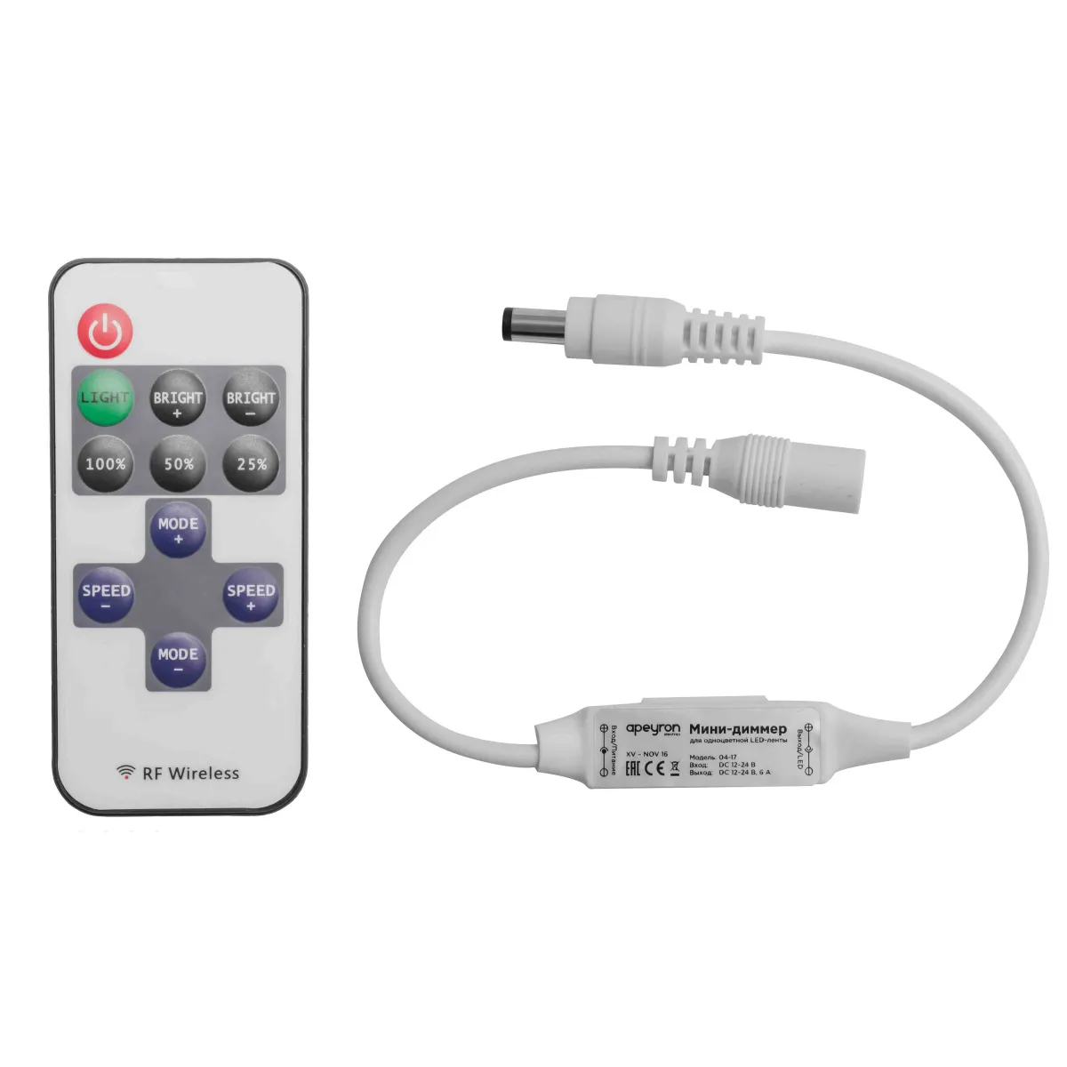 Мини-диммер 12В, 72 Вт, RF, пульт кнопочный, для монохромной светодиодной ленты, размер 40*12*5мм