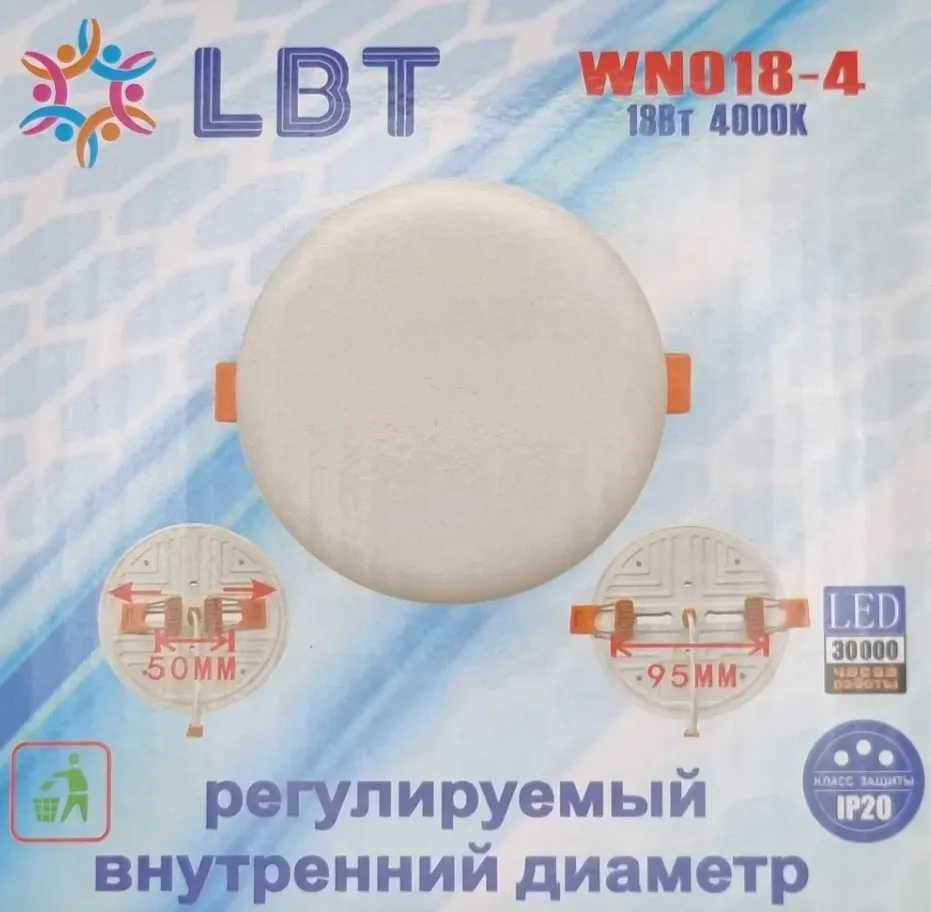 Светильник встраиваемый светодиодный WN018-4 4000К (18W), 120*34мм, с регул. внутр. диаметром (круг